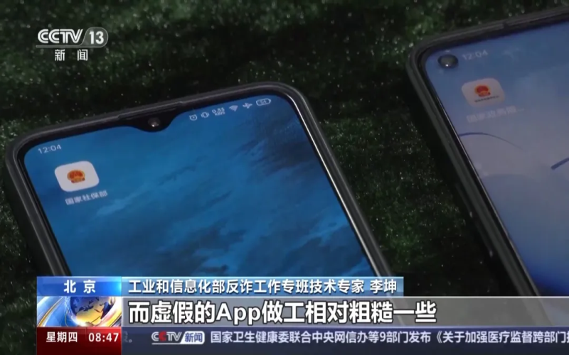 工業(yè)和信息化部反詐工作專班技術(shù)專家 李坤:大家可以看到這兩個手機,其中左邊是我們發(fā)現(xiàn)的一個虛假App,它的名稱叫國家社保部,圖標采用的是一個國徽的樣式。右邊是真正的一個App,名字叫國家政務(wù)服務(wù)中心。這兩個App在圖標上簡單一看十分相似,但是通過仔細看可以觀察到,在真實的App上,它的顏色包括文字都更加清晰,而虛假的App做工相對粗糙一些。我們再看一下里面的信息,首先在真正的這些App上,可能會有一些比較復(fù)雜的功能,包括頁面設(shè)計比較精美。在假的App上會直接邀請你去登錄,而且登錄通常需要注冊賬號,在注冊賬號的場景下邀請你填入推薦人的邀請碼。像這種邀請碼基本上就是定向詐騙,只有詐騙分子給了你這個特定的邀請碼之后才能進入這個平臺。
