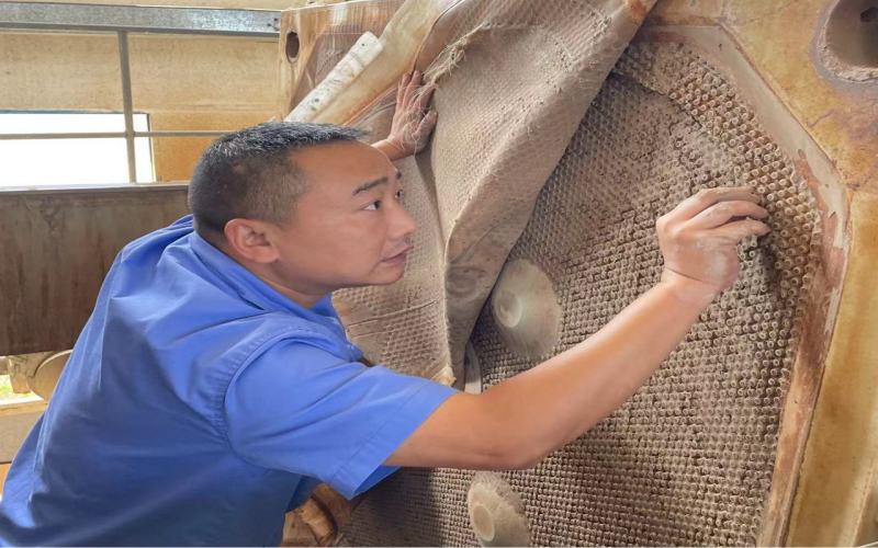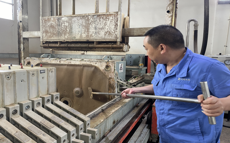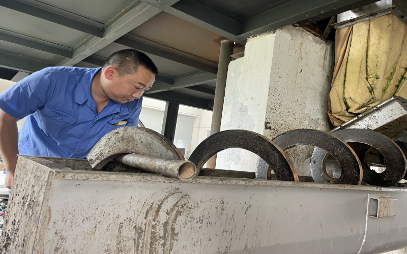 2018年1月,王穎被安排到新建成的周家壩污水廠工作,由于有污泥脫水的工作經(jīng)驗,帶頭學(xué)習新廠新設(shè)計的板框壓濾系統(tǒng)的重擔自然而然落在他肩上,他沒有抱怨新廠離家遠、交通不便利、脫水車間環(huán)境差等客觀問題,而是靜下心來一頭扎進學(xué)習的熱潮中。板框脫水系統(tǒng)看似只有進泥、調(diào)泥、壓泥、出泥幾道工序,但整套流程下來需要進行數(shù)十次步驟,還要根據(jù)泥質(zhì)調(diào)整步驟中的參數(shù),不厭其煩地記錄下每一次的試驗數(shù)據(jù),午餐時間他都毅然堅守在現(xiàn)場,同事們幫忙打來的飯,基本上是扒拉幾口便又和師傅討論起問題。尤其是炎熱的夏天“汗如泉涌”,機房的氣味刺鼻難聞,很多人不愿久干,為了能保證新廠正常出水投運,做好污泥處理的大后方,他堅持下來了,正是這樣重復(fù)的“常規(guī)操作”讓他順利出師。