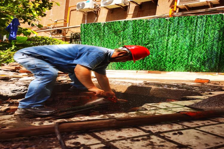 在這支水務藍隊伍里有這樣一位衛(wèi)士——管道維修工張國彪,他頭頂烈日,腳踏熱土,始終堅守城區(qū)管道巡檢第一線。此刻的他正蹲在破裂水管旁,藍色工裝早已被汗水浸透,緊緊貼在背上。他抹了把臉,任憑汗珠混著泥水滑落,手里的扳手卻一刻沒停,這已是他今天處理的第二個搶修點。