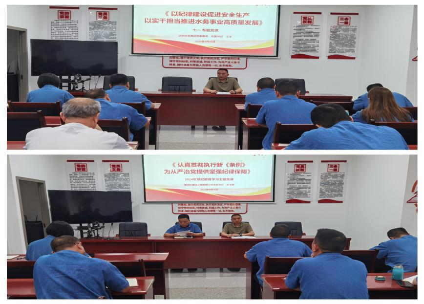強(qiáng)黨性,講好一黨專題黨課。 一堂生動(dòng)的黨課,是一場深刻的理論教育、一次初心的凈化洗禮。6月26日,支部聯(lián)系領(lǐng)導(dǎo)集團(tuán)黨委委員、紀(jì)委書記王宇為支部全體黨員上了一堂主題為“以紀(jì)律建設(shè)促進(jìn)安全生產(chǎn) 以實(shí)干擔(dān)當(dāng)推進(jìn)水務(wù)事業(yè)高質(zhì)量發(fā)展”的黨課,并對全體黨員同志如何嚴(yán)格遵守黨規(guī)黨紀(jì)提出更高的要求。支部書記朱玉峰詳細(xì)解析了《中國共產(chǎn)黨紀(jì)律處分條例》中的“六大紀(jì)律”的相關(guān)內(nèi)容,讓全體黨員對“六大紀(jì)律”有了更清醒的認(rèn)識(shí),黨性素養(yǎng)被進(jìn)一步錘煉。