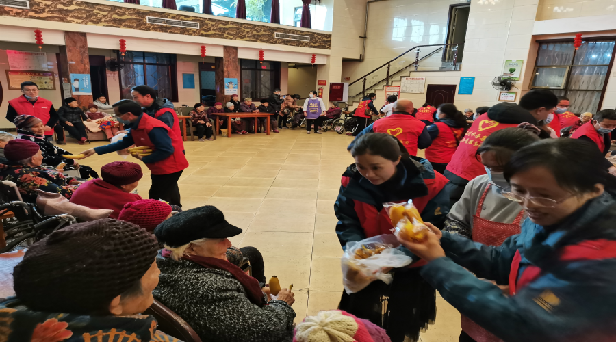 看,他們有的攙扶行動(dòng)不便的老年人散步、手拉手拉家常談愿望,有的為老人清掃公寓、喂吃食物等等,全部志愿者忙碌的身影讓全體老人感受到了家的溫馨,而現(xiàn)場(chǎng)其樂融融的景象顯得格外的和諧溫暖。