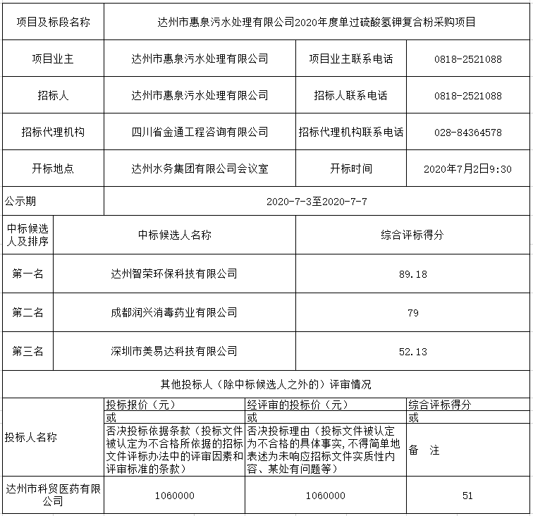 下一篇: 達(dá)州市惠泉污水處理有限公司2020年度脫泥藥劑(三氯化鐵)采購項目中標(biāo)候選人公示